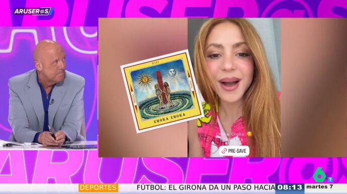"Con un perfecto portugués vemos que tiene muchas ganas de que salga a la luz 'Choca choca'", explica Tatiana Arús en el plató, donde Angie Cárdenas confiesa que le ha sorprendido lo bien que habla portugués Shakira: "Lo domina, eh".