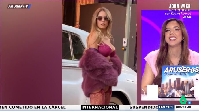 Sydney Sweeney ha sorprendido a todos al bajar de un coche en ropa interior a la llegada a los cines donde se está promocionando su nueva marca de lencería. "¿No pasa frío?", pregunta Alfonso Arús, que reflexiona en el vídeo: "Bajar así es arriesgado".