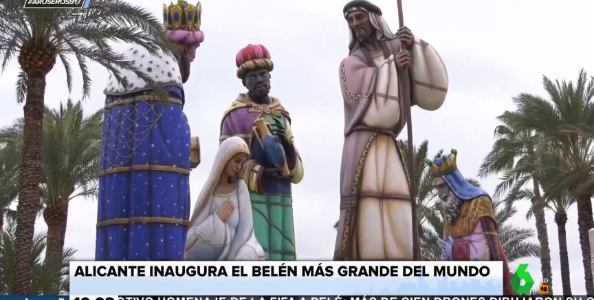 El belén más grande del mundo se encuentra en Alicante y así lo recoge el Libro Guinness de los Récords. Las figuras, de casi 20 metros, son ya un símbolo de la ciudad y el sábado dieron la bienvenida a la Navidad.