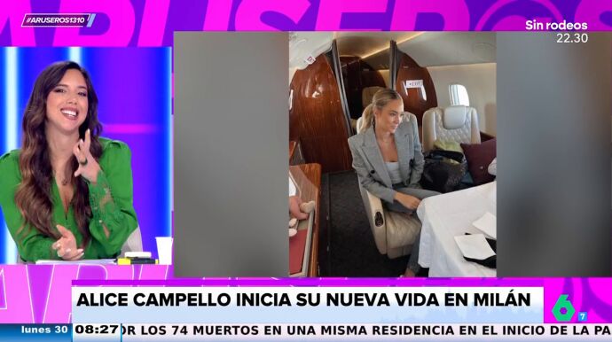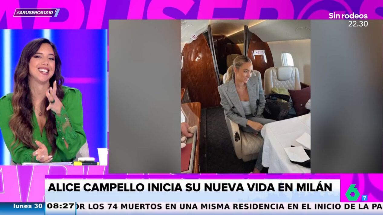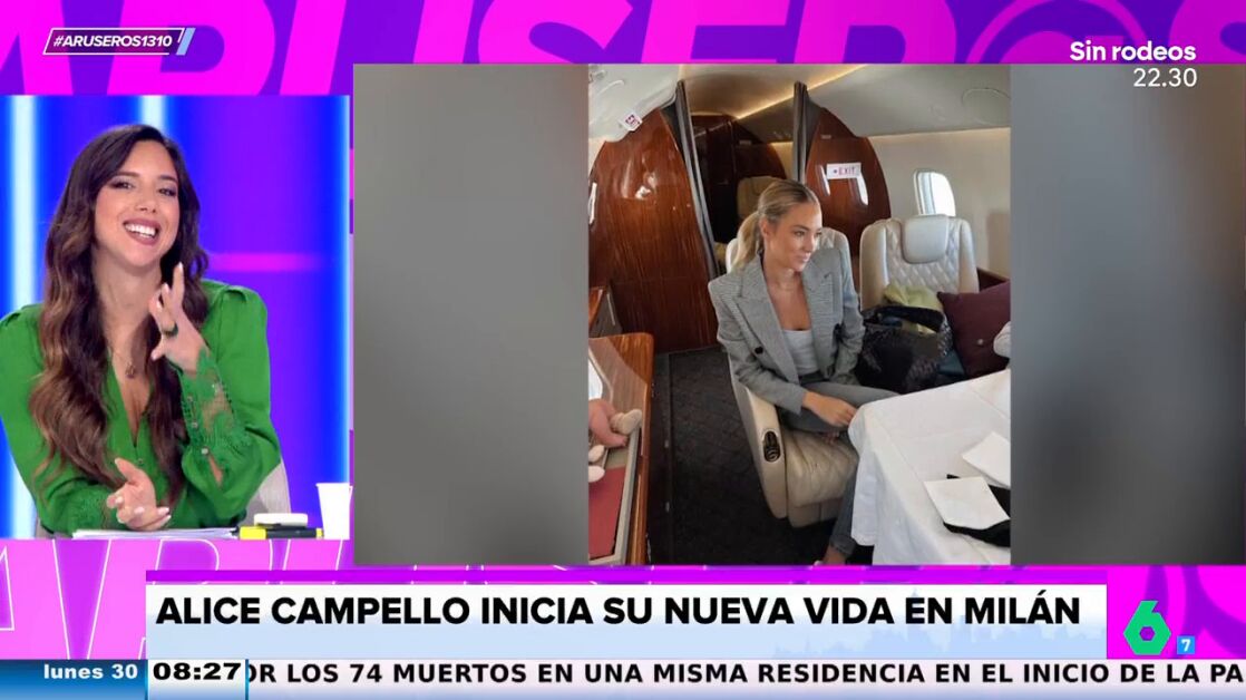 Alice Campello ha iniciado su nueva vida en Milán, Italia, su país de origen y donde se encuentra en la actualidad jugando Álvaro Morata. "Esto le acerca a él", afirma Alfonso Arús en el plató de Aruser@s, donde Tatiana Arús enseña cómo ha viajado la modelo y empresaria junto a sus hijos.