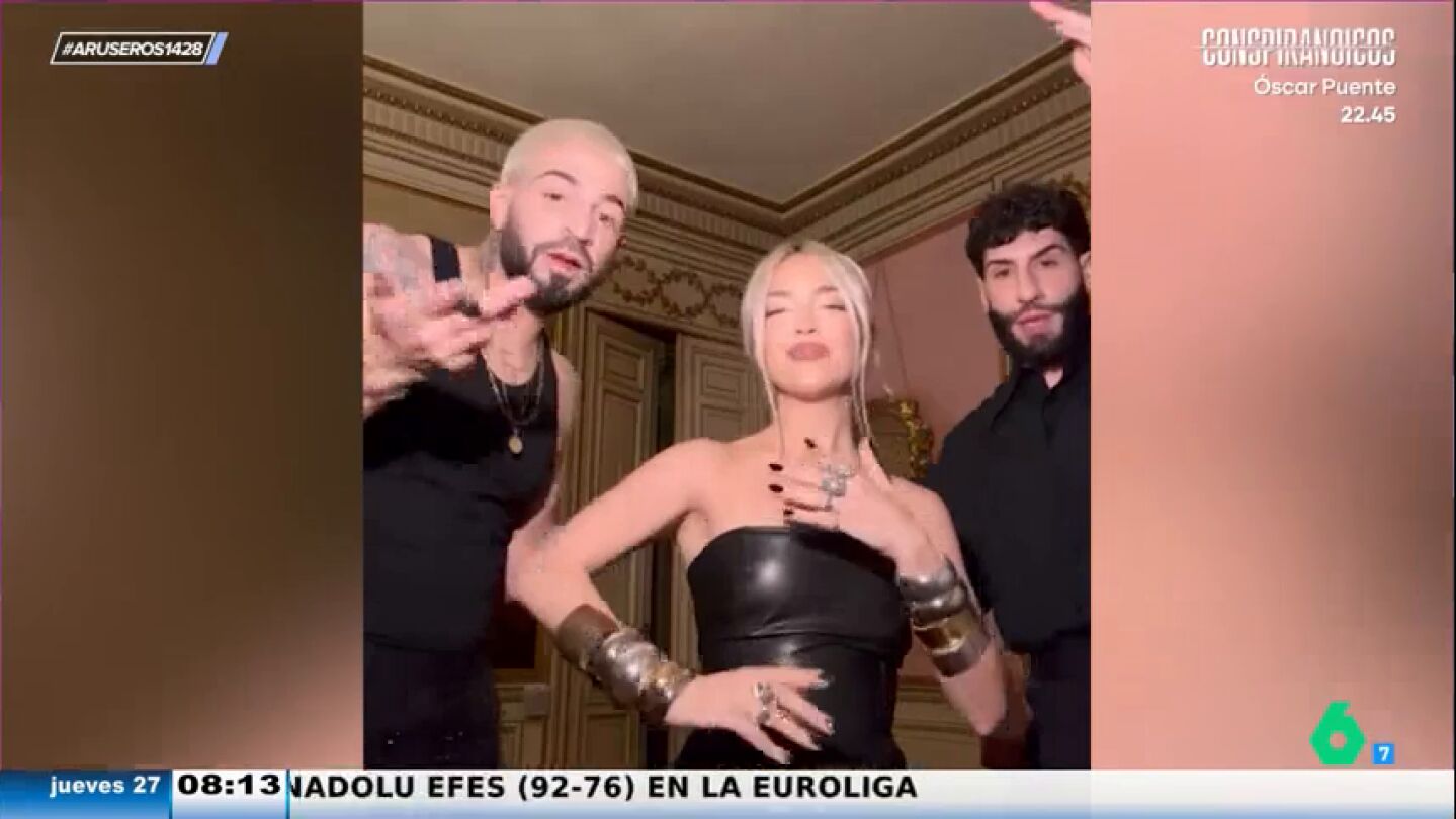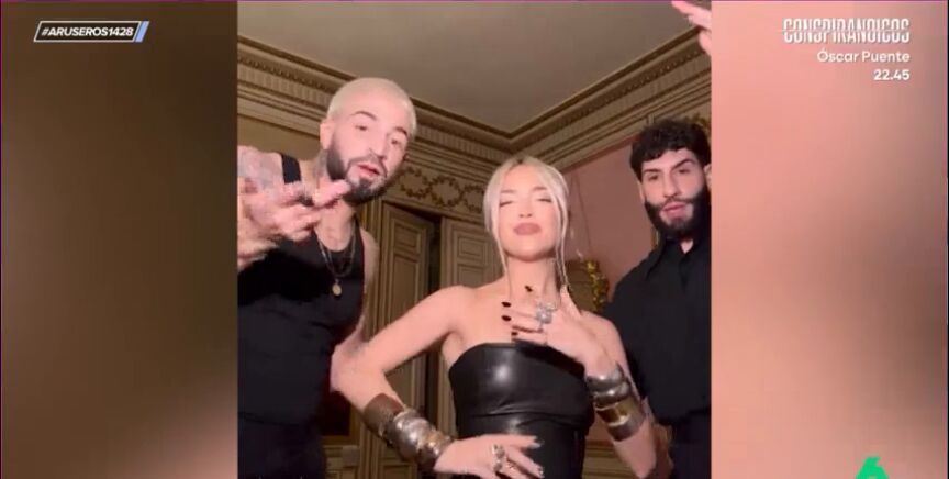Ana Mena ha compartido un vídeo en el que anuncia su nueva colaboración con 'Pepe y Vizio', un grupo sevillano con el que estrenará canción el próximo 4 de abril. "Ana Mena muestra su vena andaluza", destaca Alfonso Arús en el plató de Aruser@s, donde Tatiana Arús enseña en el vídeo principal de esta noticia cómo suena este esperado tema, 'Por tu calle'.