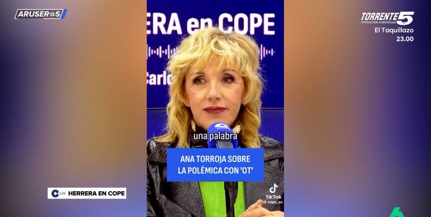 Alfonso Arús enseña en el plató de Aruser@s las declaraciones de Ana Torroja sobre la libertad de expresión y la polémica que hubo en Operación Triunfo en 2018 por la letra de una de sus canciones. "Pienso que ahora estamos siendo demasiado limitantes con las formas de expresión", afirma la cantante, que destaca que "todo parece ahora que molesta".