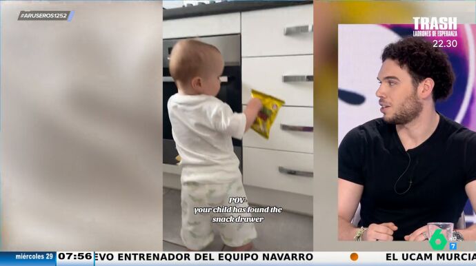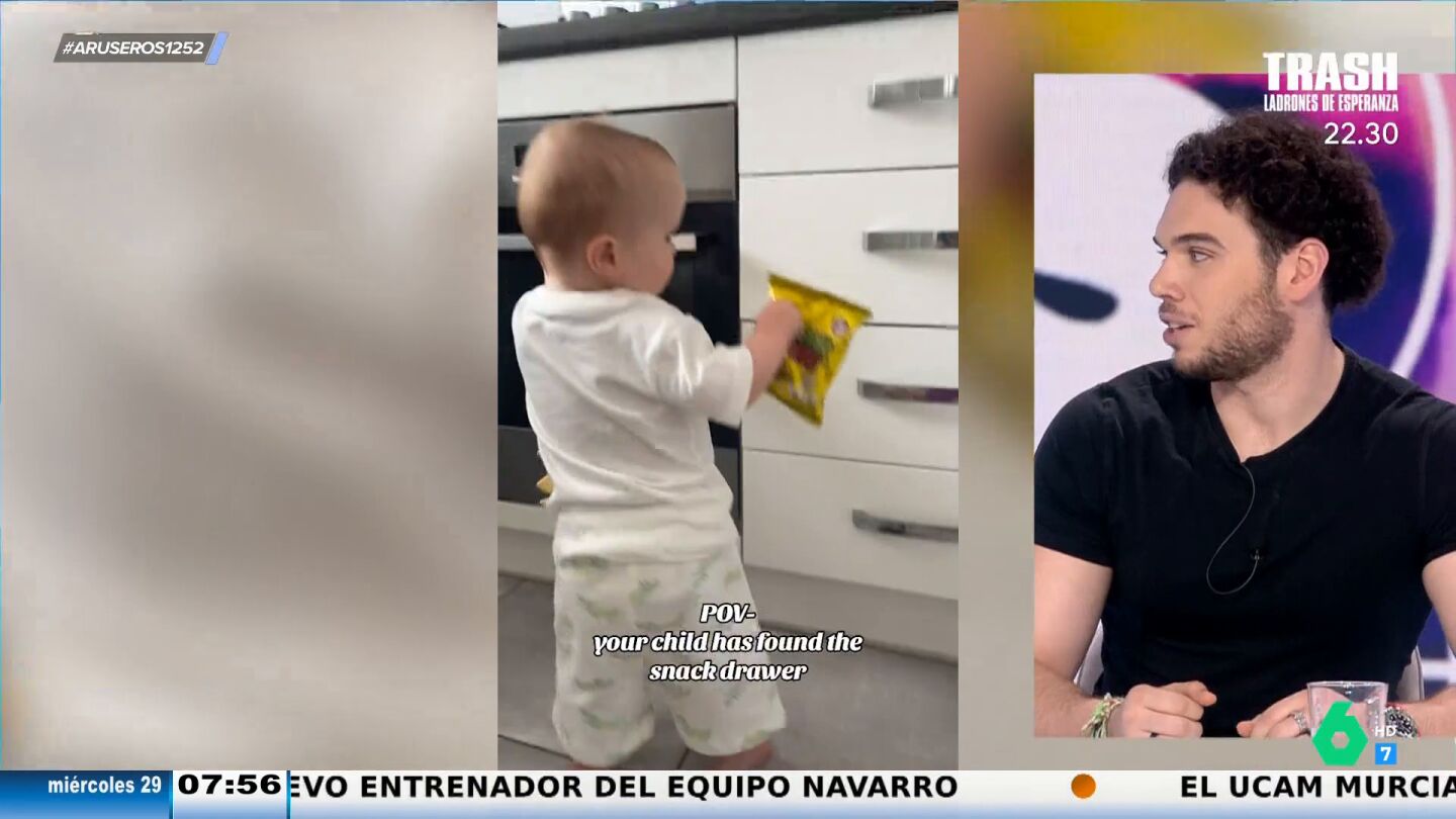 "Sabe dónde está exactamente lo que le gusta y no falla", comenta Alfonso Arús sobre el vídeo principal de esta noticia. Un niño muy pequeño está en la cocina y va directo al cajón más cercano al suelo, sabe que su madre guarda ahí los snacks. El pequeño abre el cajón y selecciona la bolsa de fritos que quiere y se va.