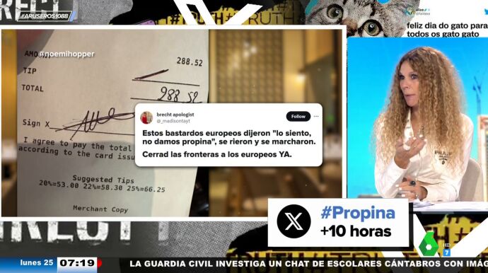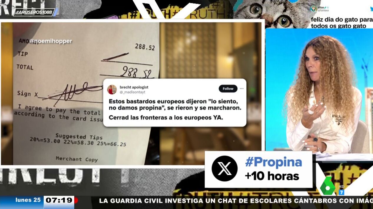 Una camarera estadounidense se queja en la red social X de que los europeos no dejamos propinas y su publicación se vuelve viral. Los aruser@s debaten acerca de la costumbre o falta de ella de que el cliente pague esta complemento del sueldo.