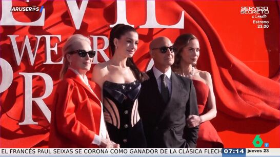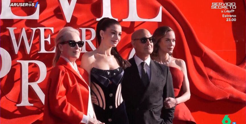 "Hay que vigilar, porque en la parte de atrás sí estaba al descubierto", explica Tatiana Arús. Por su parte, Meryl Streep ha llevado para la premier de Londres un bonito traje de pantalón y blusa y una chaqueta de color rojo. Además, ha completado su look con unas gafas de sol negras. Por último, Emily Blunt también ha apostado por el color rojo, eso sí, con un look algo más original, ya que aunque parecía un vestido palabra de honor, la actriz también llevaba unos pantalones del mismo color. Junto a las actrices se encontraba también Stanley Tucci, compañero de reparto en 'El diablo viste de Prada 2' y cuñado en la vida real.