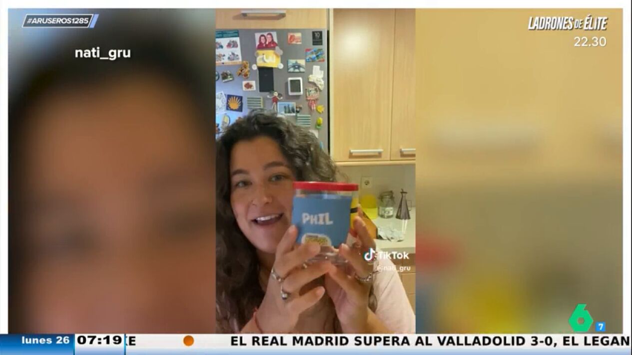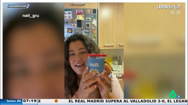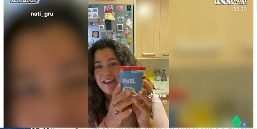 Pero el descubrimiento de la joven va más allá. "Te quedan los vasos y además, si querés, guardá las tapas y también te quedan para guardar cosas", explica. "¿Solo pasa en esta casa o pasa en todas las casas de España?", pregunta a sus seguidores. "En mi casa, cuando terminas la tarrina del queso fresco, se usa a modo de táper", cuenta Hans Arús.