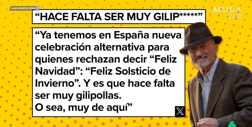 "Y es que hace falta ser muy gilipollas", afirma rotundo Arturo Pérez-Reverte, que destaca: "O sea, muy de aquí". En el plató de Aruser@s dan la razón al escritor: "Se ha dicho toda la vida Navidad, ¿para qué vamos a cambiarlo ahora?, no hay ninguna malicia".