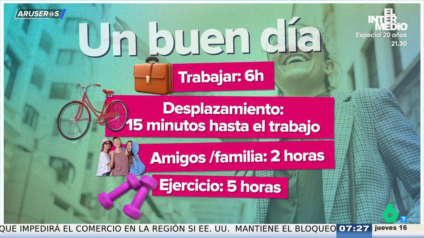 Los colaboradores de Aruser@s comentan un estudio que trata de medir las horas ideales de trabajo y ocio para ser feliz. "¿Quién se puede permitir el lujo de estar cinco horas en el gimnasio?", alucina Alfonso Arús.