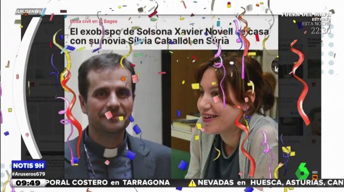 ¡Es oficial! El exobispo de Solsona ya se ha casado con Sílvia Caballol. Aruser@s lo celebra en plató con confeti en la pantalla.