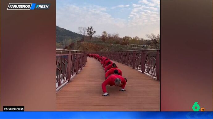 Según explica Alfonso Arús, es una actividad que llevan practicando desde hace más de tres años y cuentan que estos movimientos van muy bien para el dolor lumbar y la espina dorsal. Lo impactante de las imágenes es ver caminar a todas estas personas de manera muy sincronizada, una técnica que ha dejado con la boca abierta a más de un tertuliano en el plató.