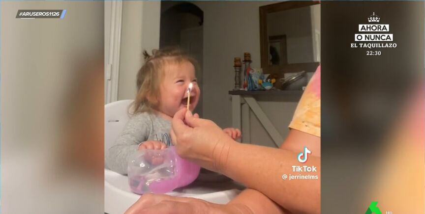 No tiene ni un añito, pero ya está empezando a aprender a soplar, porque su mamá quiere que apague las velas en su primer cumpleaños. Para ello, ambas están ensayando, como vemos en este divertido vídeo viral, subido por @jerrinelms y emitido en Aruser@s. A la pequeña le encanta esta actividad y se desternilla de la risa cada vez que su madre enciende una cerilla.