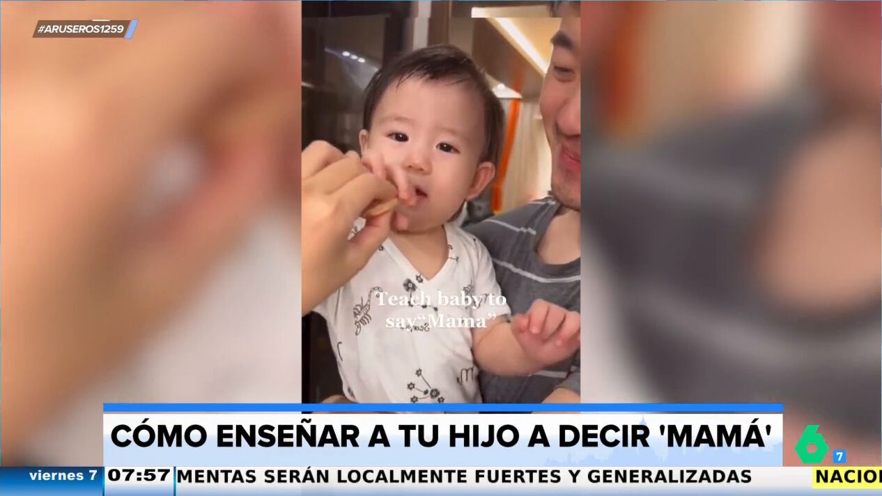 "Normalmente papá quiere que la primera palabra que diga el niño sea papá y mamá intenta que sea mamá, pero si hay soborno de por medio se puede conseguir el resultado", comenta Alfonso Arús antes de poner el vídeo principal de esta noticia. En las imágenes se puede ver a unos padres enseñando a su hija a decir mamá de una manera peculiar. "Cada vez que el padre dice mamá la madre le da una galleta, a la cuarta el niño ya dice mamá para conseguir su galleta", explica Alfonso Arús.