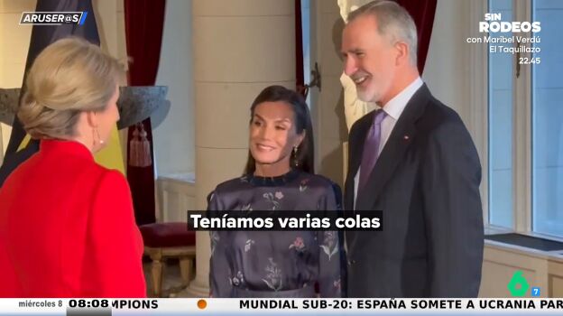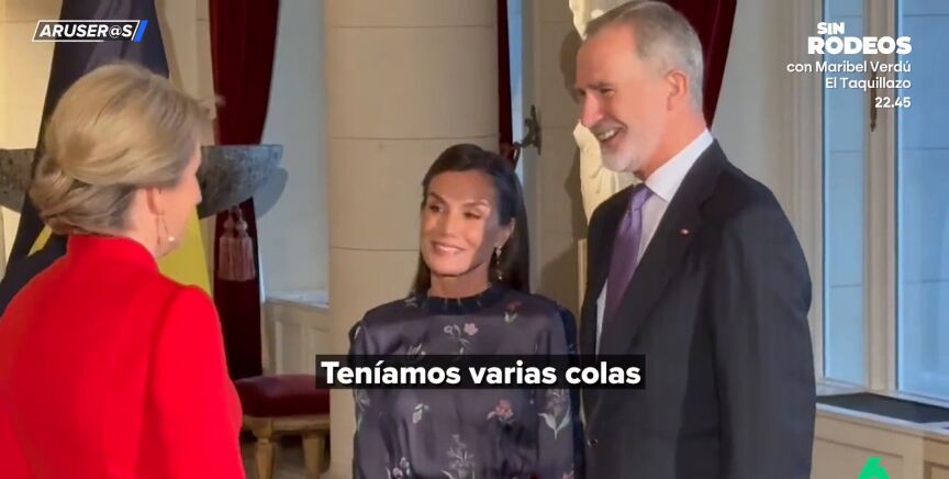 "Si la mayoría son familia", destaca Angie Cárdenas en el plató, donde Tatiana Arús cuenta una de las anécdotas: "Llegaron cuatro minutos tarde y el rey Felipe se excusó". "Teníamos varias colas", explica el monarca español entre risas junto a la reina Letizia.