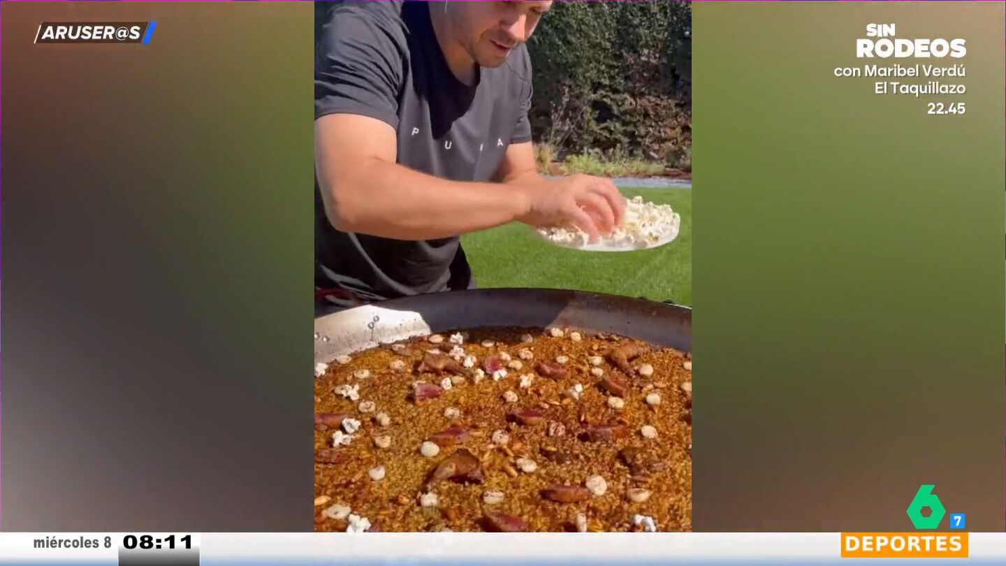 Dabiz Muñoz enseña en este vídeo su paella de chocolate, pichón y palomitas. Además, el exitoso chef explica los pasos a seguir para hacer su paella viral: "Empiezo la paella dorando los interiores del pichón, le añado la salmorreta de mole poblano y le pongo un caldo que he hecho con las carcasas de los pichones".