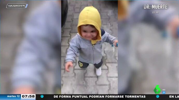 Y efectivamente, el niño se da cuenta de lo que acaba de pasar a los pocos segundos. Sorprendido, mira al hombre que tiene junto a él y busca con la mirada a su padre para después salir corriendo hacia él.