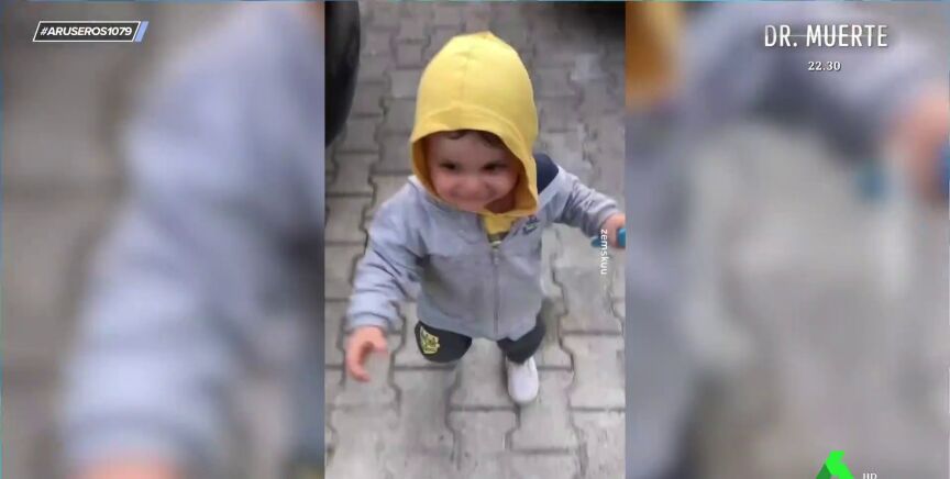 El hombre que graba este vídeo viral emitido en Aruser@s es el padre de la criaturita que lo protagoniza. El hombre ha sacado el móvil y se ha puesto a grabar cuando su hijo, por equivocación, se ha agarrado a la mano de otro señor, esperando captar la reacción del pequeño al descubrirlo.