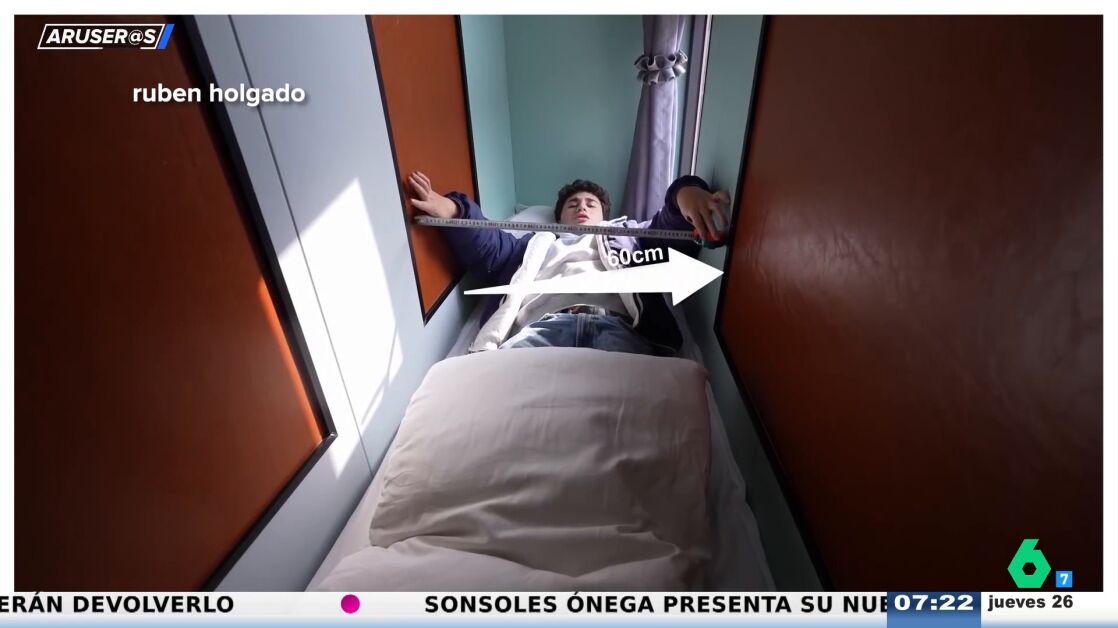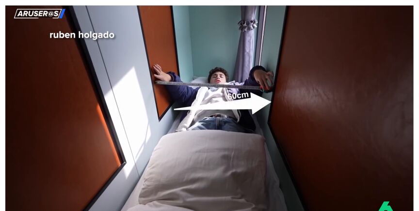 El creador de contenido Rubén Holgado muestra en redes sociales el interior de uno de los alojamientos más angostos del planeta, con zonas que no superan el medio metro de anchura y un precio de 10 euros por noche.