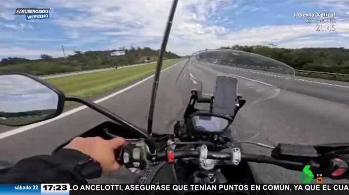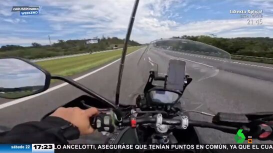 El hombre parece no tener miedo a pesar de que la moto empezó a temblar cuando iba a más de 200 km por hora. Las imágenes de la caída a esa velocidad son espectaculares.