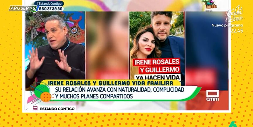 Aurelio Manzano analiza en este fragmento que recoge Aruser@s de Estando contigo, el programa de Castilla-La Mancha TV, uno de los romances que más titulares ha acaparado en la prensa de sociedad en los últimos días: la relación de Irene Rosales con un empresario sevillano.