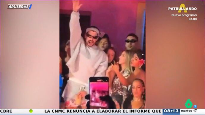 "Eso parece más una comuna hippie que la caseta de Bad Bunny", destaca, entre risas, Tatiana Arús, que afirma que "estaba todo el mundo": "No cabía ni un alfiler". "Pero, ¿ha pensado en ampliar la casita un poco?", pregunta Alfonso Arús, que alucina al ver a tanta gente dentro. "Tanta gente no cabe, aquí para ir al baño tiene que ser complicado", señala el presentador, que destaca más imágenes llamativas del concierto de Bad Bunny.