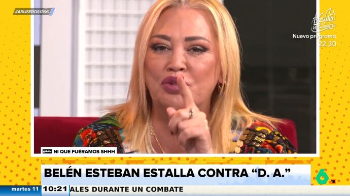 "Cuidado con Belén Esteban, que estalla contra 'D.A'", destaca Alfonso Arús, que muestra en el vídeo principal de esta noticia cómo la colaboradora de televisión ha estallado contra un periodista por sus palabras sobre Anabel Pantoja y la propia Esteban.
