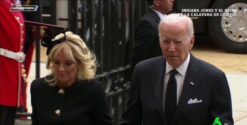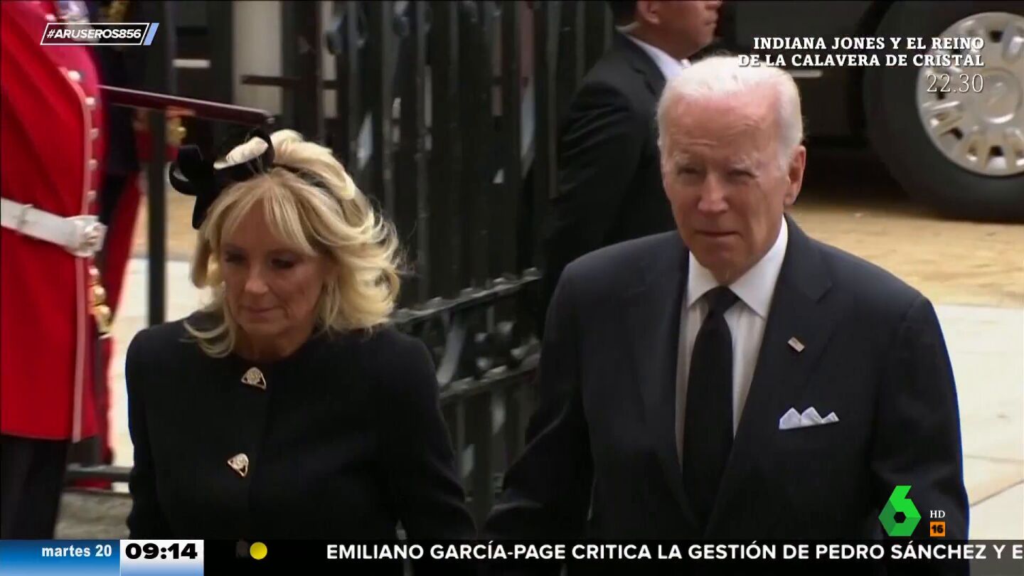 Los espectadores de 'Aruser@s Weekend' y el equipo del programa ya se lo veían venir. El presidente de Estados Unidos, Joe Biden, y su mujer, Jill Biden, llegaron tarde al funeral de la reina Isabel II. Pero no fue el único gesto con el que incumplieron el protocolo.