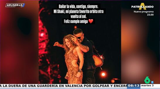 "Bailar la vida, contigo, siempre", ha escrito Alejandro Sanz junto a una fotografía en la que aparece sobre un escenario bailando con Shakira en pleno concierto. "Mi Shaki. Mi planeta favorito orbita otra vuelta al sol. Feliz cumple, amiga", concluye el cantante su dedicatoria.