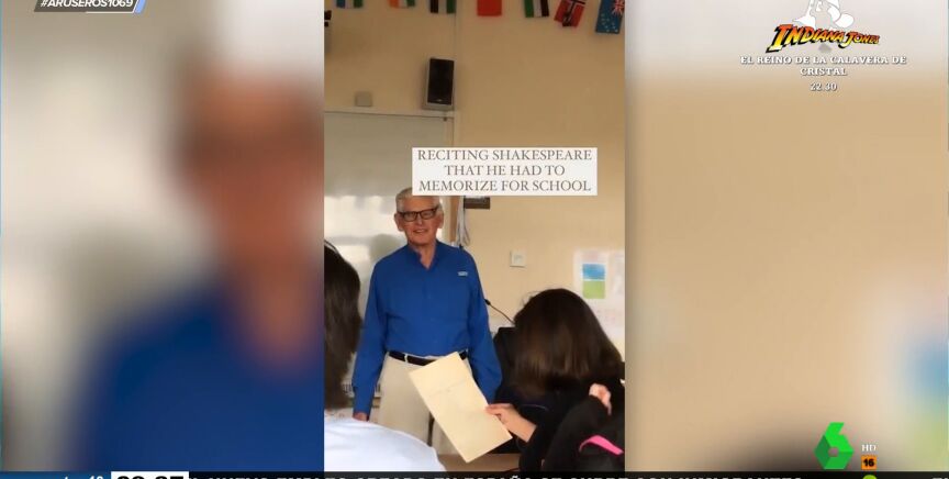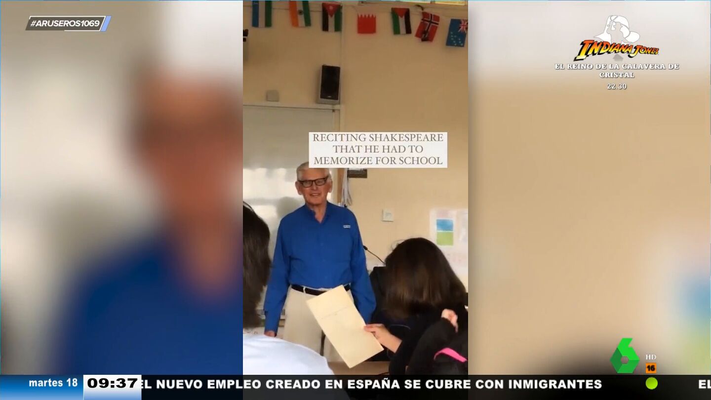 Este hombre de 96 años se lleva una auténtica sorpresa cuando le conducen sin que él lo sepa de vuelta al colegio en el que estudió cuando tan solo era un niño. Tal y como podemos ver en este vídeo emitido en Aruser@s, este abuelo irlandés revisita cada una de las aulas y espacios con la ilusión de un chiquillo. Incluso se atreve a recitar un fragmento de una obra de Shakespeare que memorizó en su infancia.