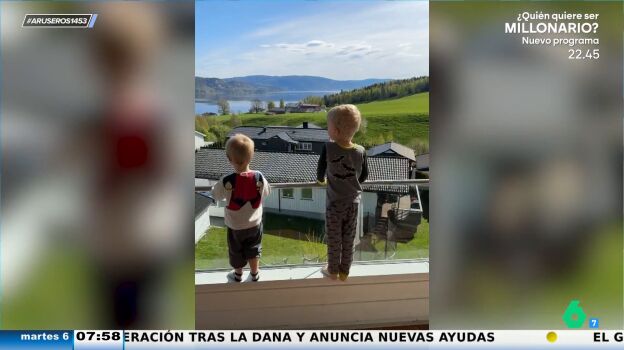 Desde el balcón de su casa y cantando a voz en grito, como solo puede hacerse a esas tiernas edades, los dos niños noruegos que protagonizan este vídeo viral emitido en Aruser@s felicitan a su anciano vecino, que acaba de celebrar su 84 cumpleaños.