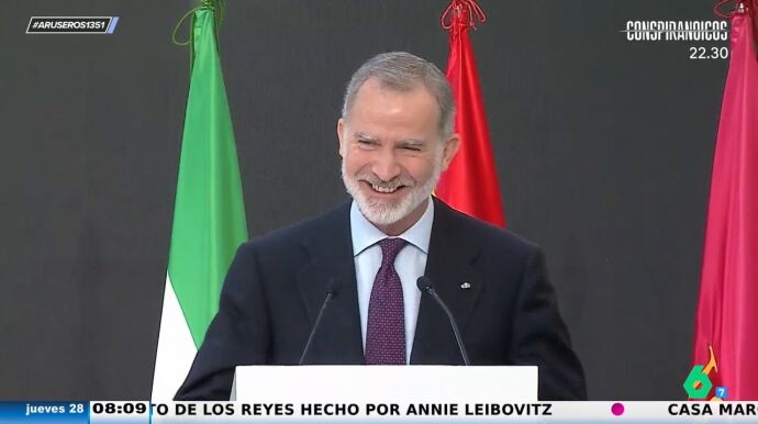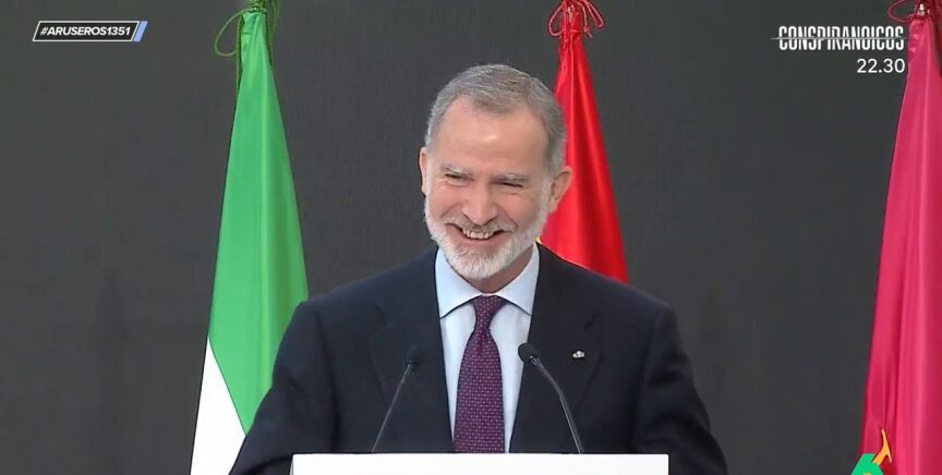 Tras la actuación de Estopa, al rey Felipe todavía le quedaban unos 15 minutos de discurso para poner el broche y final a la entrega entrega de las Medallas de Oro al Mérito en las Bellas Artes. Y así reaccionó.