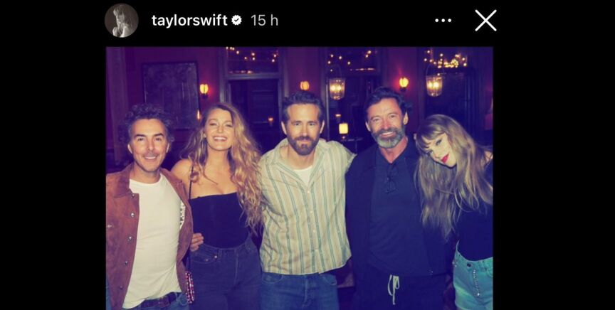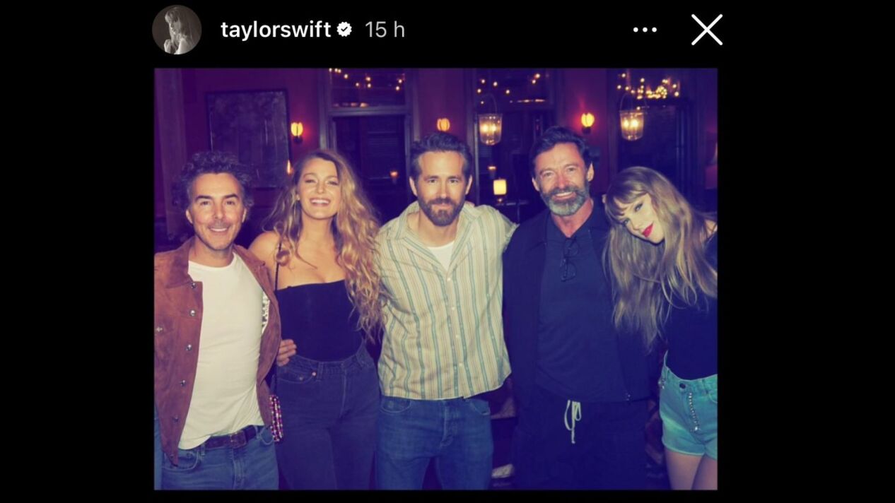 La estrella del pop ha publicado en sus redes una foto junto aBlake Lively, Ryan Reynolds, Hugh Jackman y Shawn Levy, donde elogia la película "Deadpool & Wolverine" y revela que es la madrina de los hijos de la pareja.