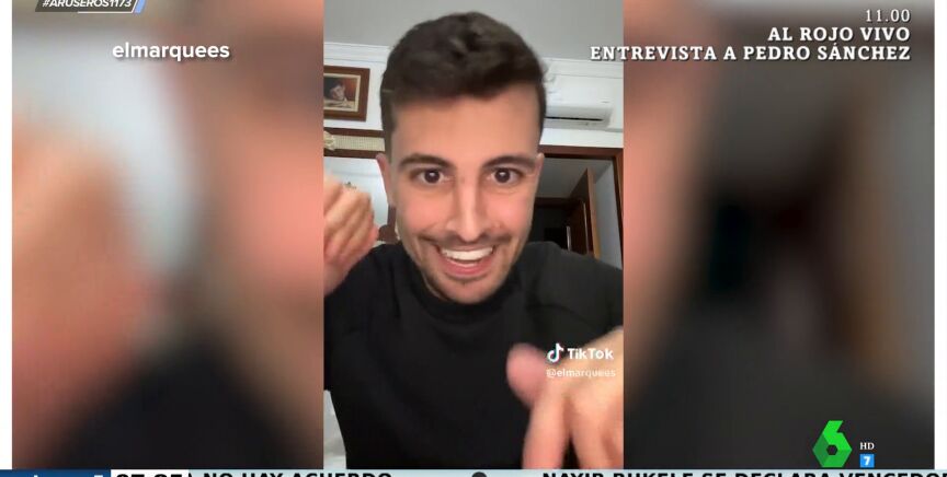 "Yo soy muy cotilla. Yo estoy por ahí por la zona y estoy escuchando a lo mejor una mesa que hay una parejita y oigo 'bueno, y tú, ¿a qué te dedicas?' y digo 'uuh, esto es cita Tinder'", cuenta el camarero @elmarquees en este vídeo viral de TikTok emitido también en Aruser@s.