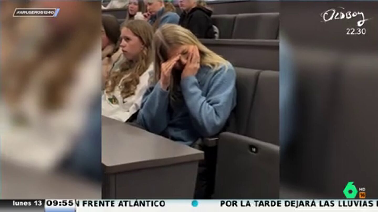 Como se puede observar, la mayoría de los alumnos se pone las manos en los ojos porque no quiere ni mirar. "A mí me da la sensación de que la mitad se ha cambiado de carrera", bromea la colaboradora.