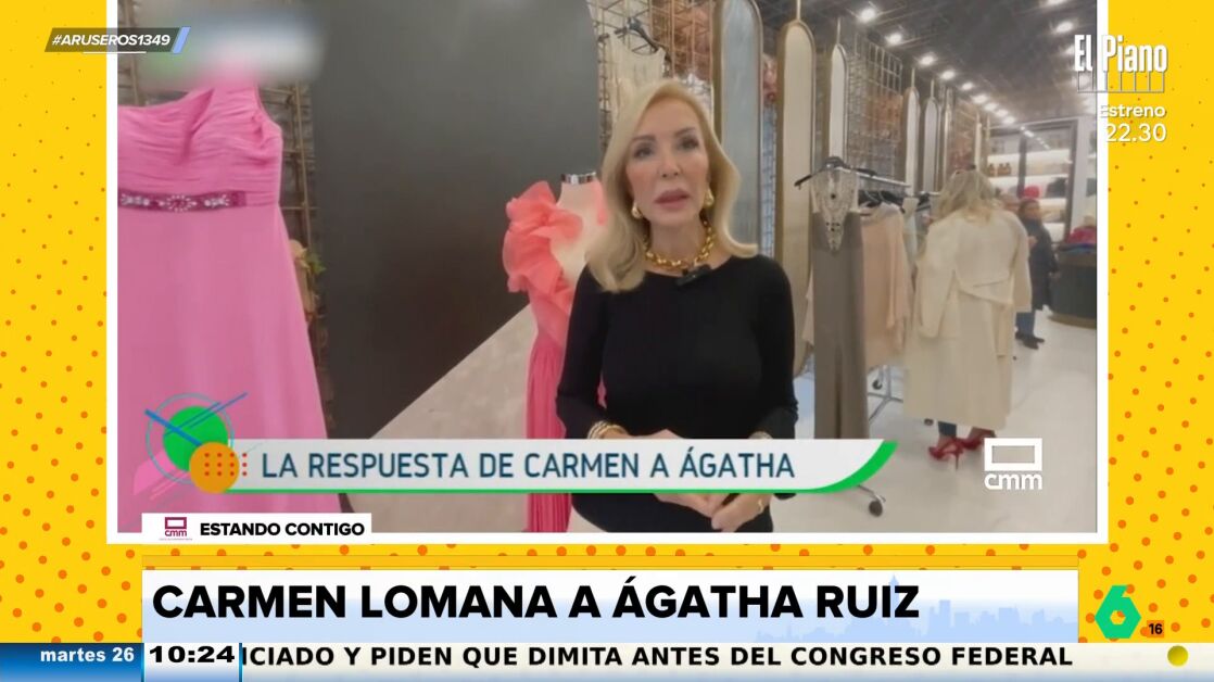 Carmen Lomana ha vuelto a cargar contra Ágatha Ruiz de la Prada después de que la diseñadora de moda la criticara por ser de pueblo. "Yo creo que no está bien, porque si no no diría esas barbaridades", critica Carmen Lomana, que asegura que Ágatha Ruiz de la Prada "es muy clasista": "Como si la gente de los pueblos fueran de otro origen".