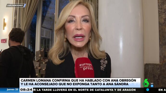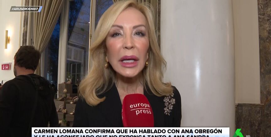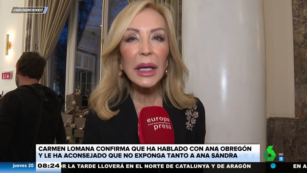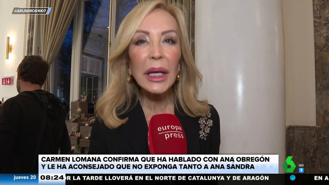 La socialité ha afirmado que ha hablado con Ana Obregón: "Le he dicho que tendría que tener menos exposición y disfrutar de este momento maravilloso". "Se fuma un puro en todo lo que diga la gente", afirma Carmen Lomana, que destaca que no entiende nada: "Cuando venga y esté con ella se lo diré".