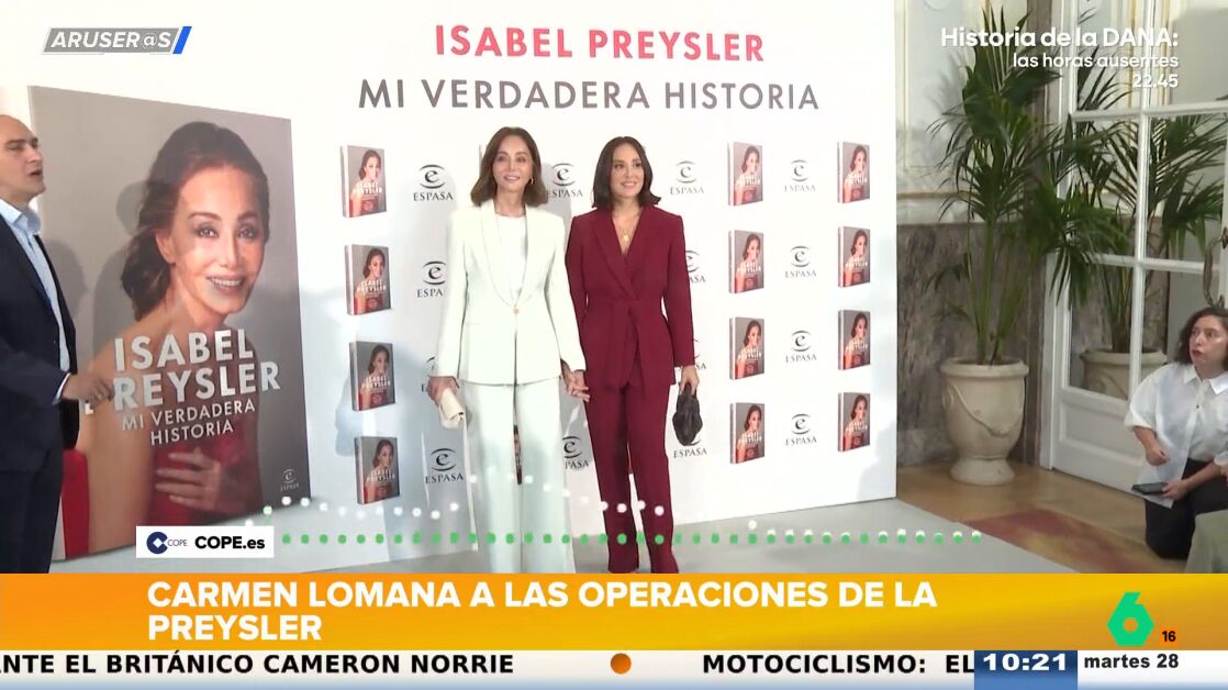 La empresaria Carmen Lomana reacciona con ironía al número de cirugías que se le atribuyen a Isabel Preysler: "No podía sonreír, pero ahora tampoco mucho".