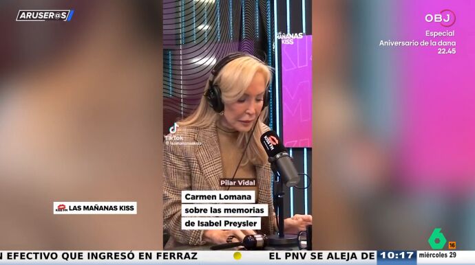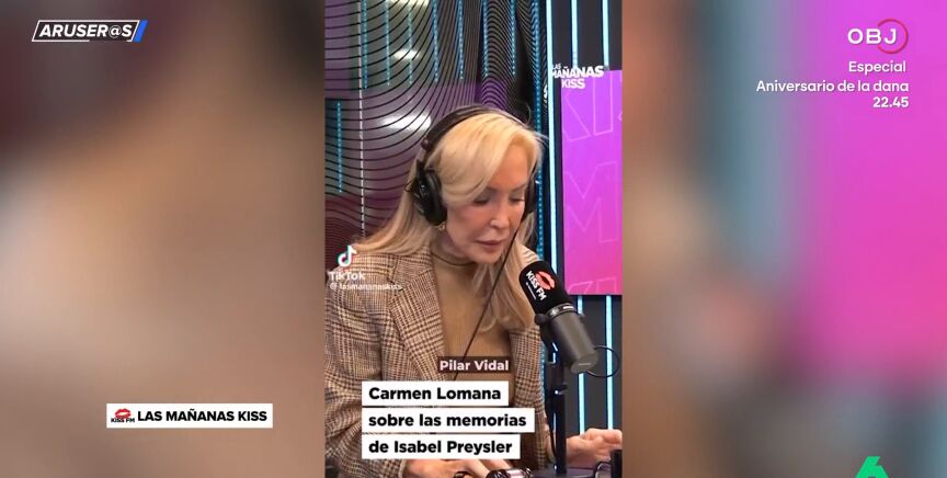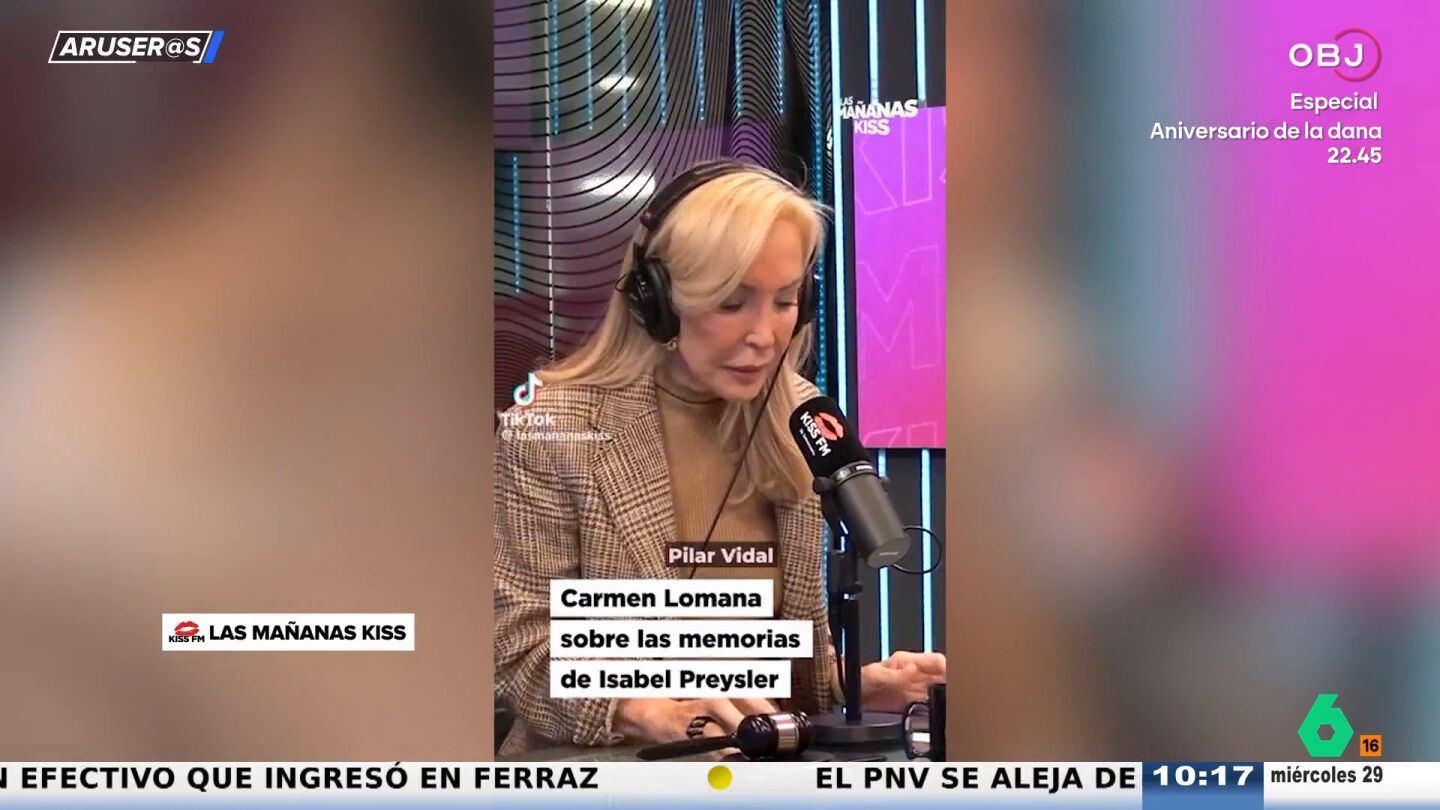"Las memorias las escribió Pilar Vidal, que la quiere mucho", asegura Carmen Lomana ante los micrófonos de Las Mañanas de Kiss, provocando la sorpresa del periodista del programa, que la interrumpe para preguntar: "¿Entonces no las escribió ella?".
