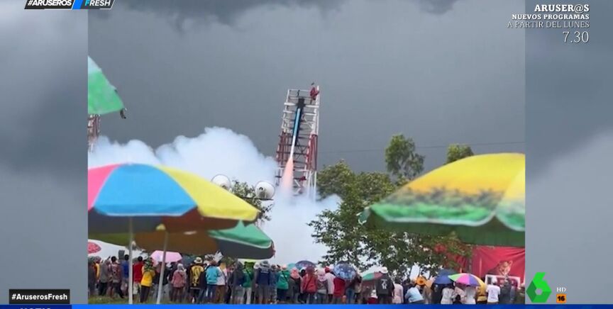 La competición de Tailandia para elegir al mejor cohete casero enfrenta a 26 templos diferentes en este vistoso festival que pretende invocar la lluvia.