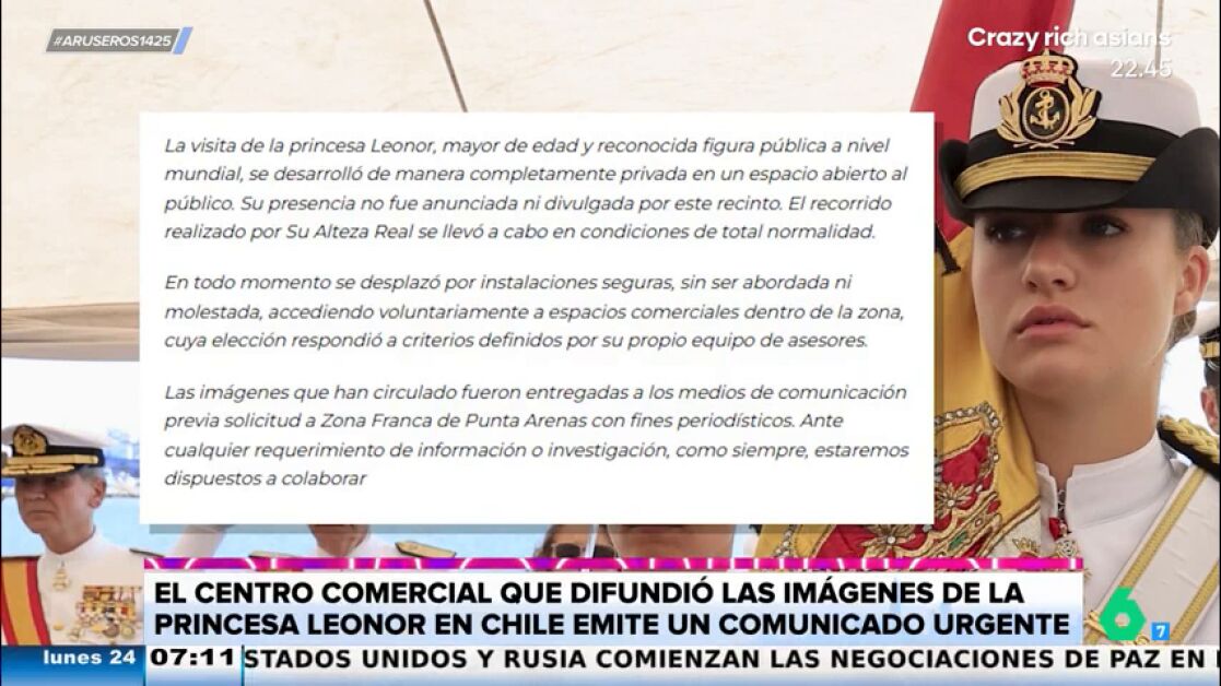 La difusión de unas imágenes de la princesa Leonor en un centro comercial de Chile, el Zona Franca de Punta Arenas, ha generado gran polémica este fin de semana. La Casa Real española ha denunciado ante la Policía del país dicha filtración.
