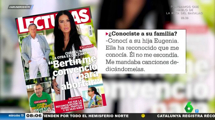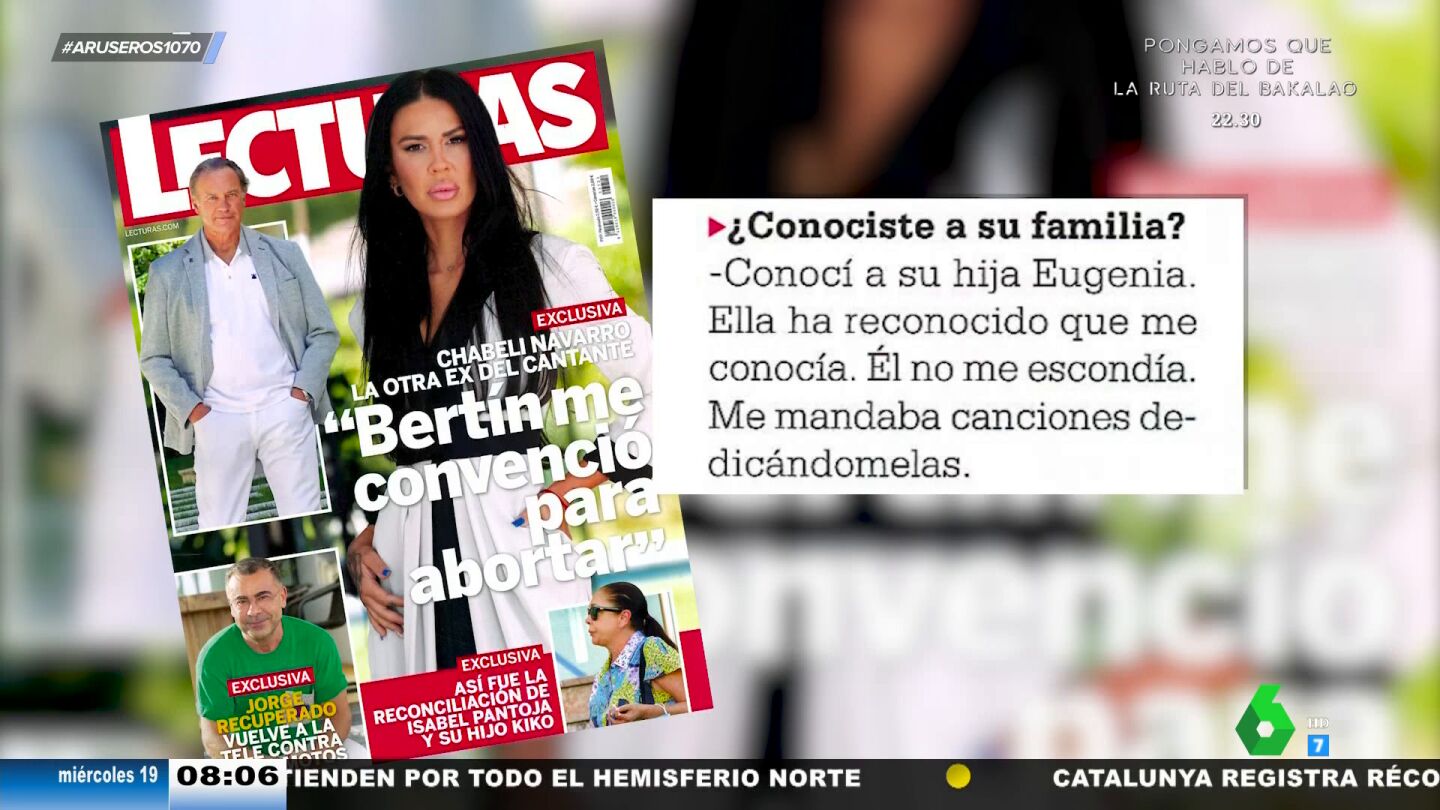 "Cuando le anuncié el embarazo a Bertín me dijo una cosa que me dolió muchísimo", afirma Chabeli, que asegura que el cantante le contó que estaba intentando volver a recuperar a su familia. La joven afirma que conocía a su hija Eugenia, por lo que el cantante no la escondía y le dedicaba, incluso, canciones. "Bertín me dijo que me pediría cita en una clínica privada para ver si estaba embarazada de verdad", insiste Chabeli, que desvela que le comunicó que había abortado a través del chófer porque él no le hablaba.