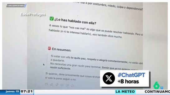 Y es que esta pobre chica ha descubierto gracias a ChatGPT que a su novio le cae mal y que, además, quiere dejarla. Al parecer, el chico hablaba con la inteligencia artificial con la confianza y cercanía que se le tiene a un amigo real y llegó a pedirle consejo para acabar con su relación.