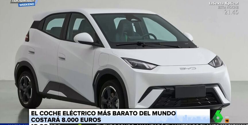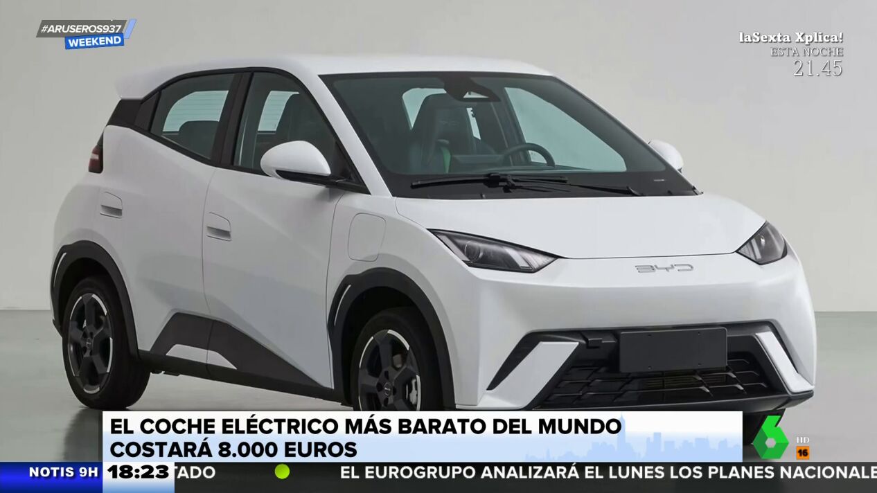 Aruser@s Weekend ha mostrado las primeras imágenes oficiales del coche eléctrico compacto más asequible del mundo, que se va a poner a la venta de manera inminente, con un precio de 8.200 euros, según explicaba Alfonso Arús. Este vehículo eléctrico tiene unas baterias de sodio y mide unos 3,6 metros de largo. Su autonomía es de 300 kilómetros. El nombre del coche es BYD Seagull, aunque desde el plató proponían llamarle "Twingo amperio".