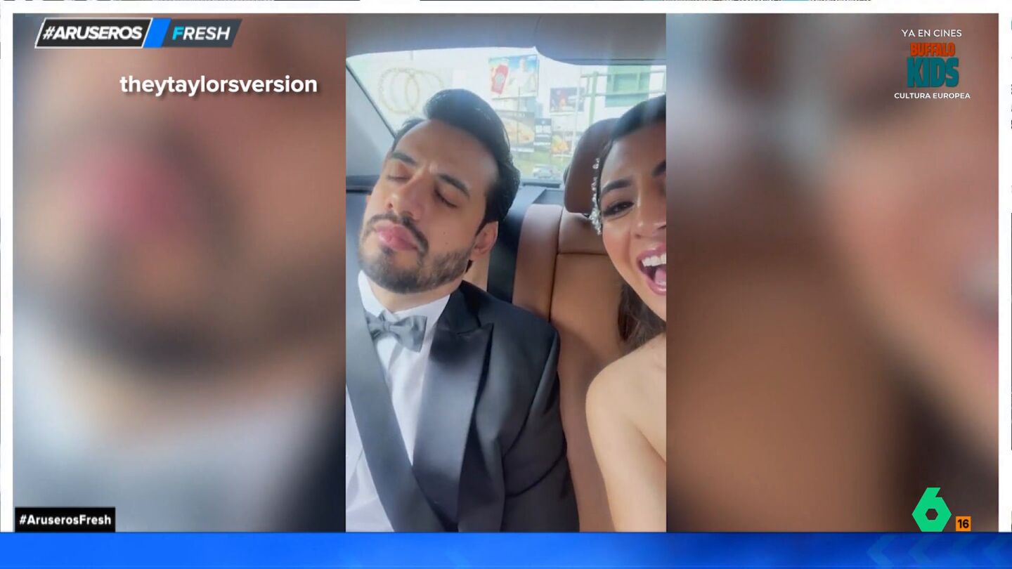 A veces la realidad supera la ficción, pero esta escena fácilmente podría superar a un momento cómico de cualquier película. "Me parece que la despedida de soltero terminó bastante tarde", comentaba Hans Arús presentando el vídeo que acompaña esta noticia. En las imágenes se puede ver a una pareja camino a su boda en el coche. La mujer decide grabar un vídeo para el recuerdo cuando, de pronto, gira el móvil en dirección al novio y se lo encuentra dormido.