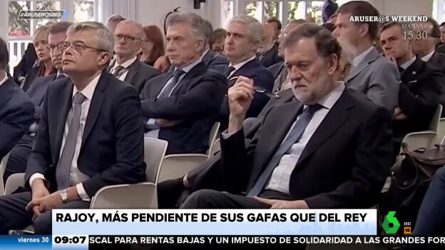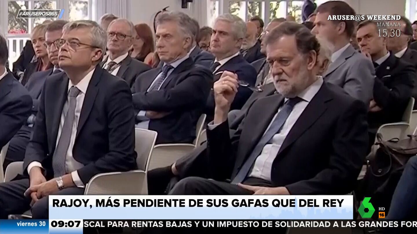 Mientras el rey Felipe VI se encontraba dando un discurso en el Foro La Toja, el expresidente Mariano Rajoy parecía estar más entretenido con sus gafas que con el discurso del monarca. Este es el vídeo del cómico momento.