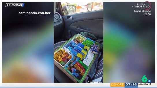 Alfonso Arús está entusiasmado con esta idea que ha tenido Luis, un conductor de Uber que ya lleva un par de meses con un quiosco montado en su coche. El presentador de Aruser@s lo ha bautizado como el 'badutaxi', haciendo referencia al mítico badulaque de Apu de Los Simpson. En su tienda hay patatas, chicles o chocolate, entre otras cosas, como vemos en este vídeo viral de @caminando.con.her. "¿Pero te lo dejan comer en el taxi? Porque puede acabar hecho una guarrería", dice Angie Cárdenas, a quien eso no le hace ninguna gracia.
