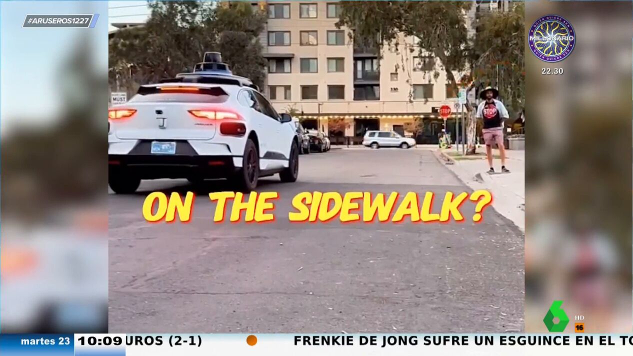 "Vaya troleo", destaca Angie Cárdenas . Marc Redondo comenta que su función ha sido poner a prueba a estos coches y ven que algunos frenan y otros no . Pero el problema de los que no paran está en que no se puede saber si es porque fallan o porque detectan que es una persona. "Como esto se ponga de moda y la gente empiece a ponerse camisetas con señales de tráfico va a haber un problema", piensa María Moya.