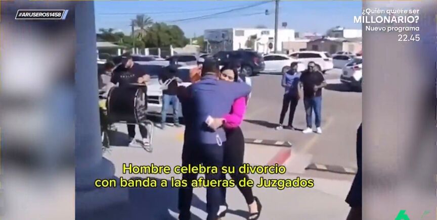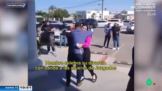 Con abrazos y una música que parece tocada por la charanga de un pueblo, el señor se despide de su vida de casado. "En las imágenes se ve cómo el divorcio no tiene por qué ser traumático", comenta el presentador del programa de laSexta.