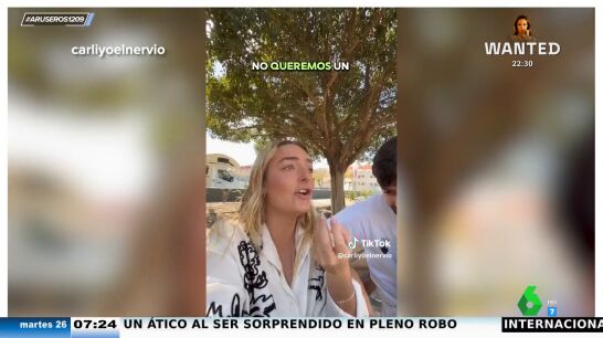 Hans Aarus enseña en el plató de Aruser@s la conversación viral entre una pareja sobre su hipotética boda. "¿Sabéis lo que me ha dado mi novia? Me ha metido un anillo en la cartera por si no me acuerdo de su tamaño de dedo", cuenta un chico en el vídeo, donde la joven explica que "se llama ser práctica".