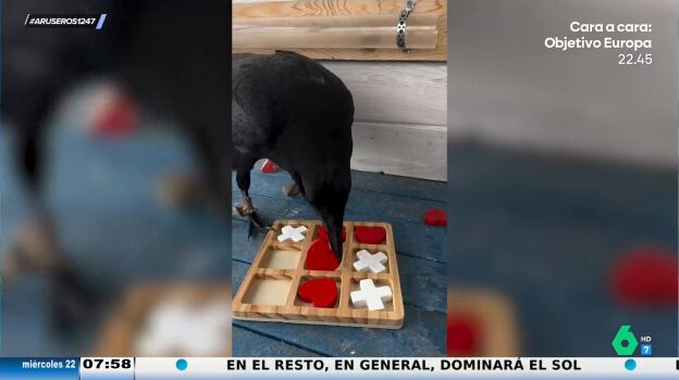 Un hombre decide grabarse jugando al tres en raya contra su cuervo y se viraliza porque el ave le gana de forma rápida y contundente. "Parece que entiende perfectamente el juego", destaca Alfonso Arús del vídeo.