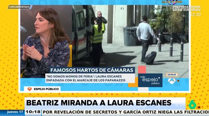 Beatriz Miranda critica a Laura Escanes en 'Espejo público' cuando en el plató se habla del hartazgo de los famosos con los paparazzis. "Me parece una llorona, está todo el día llorando, es muy llorona, además es famosa por sus razones", critica la periodista, que da a entender que la influencer es famosa por su antigua relación con Risto Mejide.